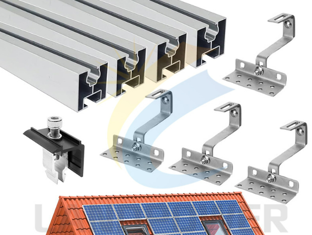 I will show you some of our best-selling accessories, including rails, L-feet, mid clamps, side clamps, roof hooks, etc.