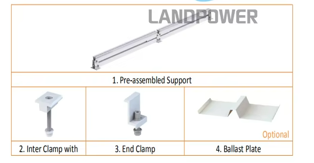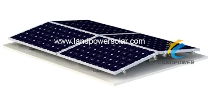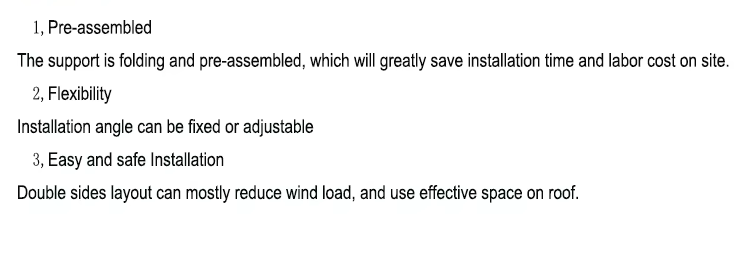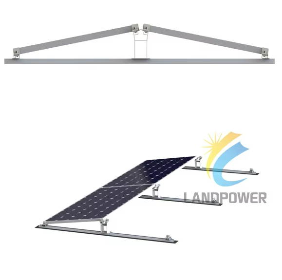 East / West Solar Flat Roof Mounting System allows solar pv installed facing east and west orientation, it optimizes the roof space and can increase the power production. This system needs less part and less work, it is suitable for both commercial and presidential flat roof installation.